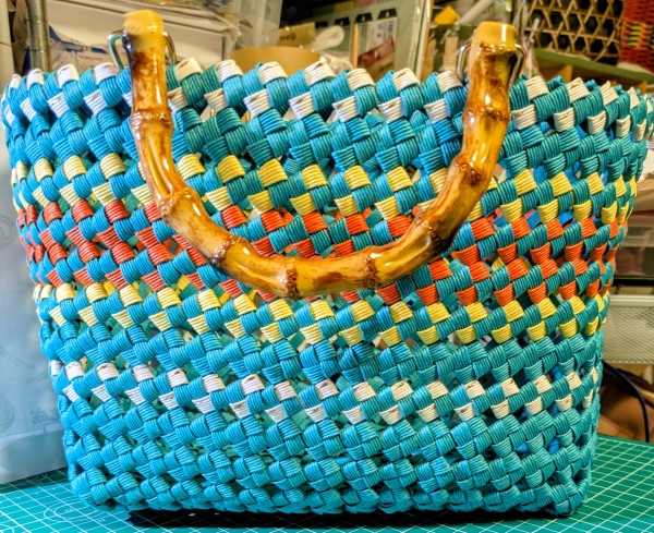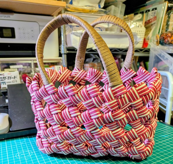 クラフトバンドでよろい編みのバッグを作ったのですが、全体が歪んでいるので〜手直して完成です。