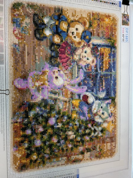 ダイヤモンドフィックス 3時間ちょっとで完済した もう少しゆっくり楽しみたかったけどビーズの貼り方を間違えてしまいフィルムが貼れなくなったので、急いで完成させた