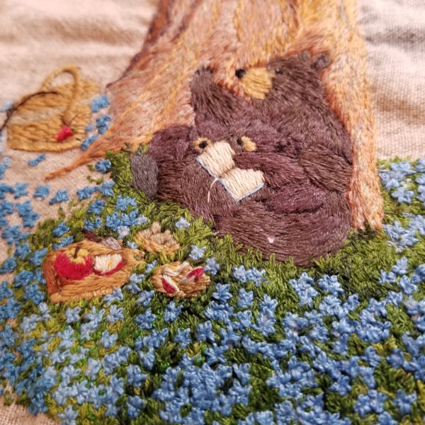 オーダーA3横の刺繍フレーム。 刺繍アイテムは動物とお花畑をいただいています。