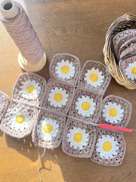 今流行ってる花束になるコースター作って見ました。黙々と作っていたらすごい数出来ていました。色んな色の組み合わせが楽しかったです。毛糸は100円ショップの毛糸を使用しています。