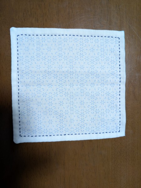 ダイアゴナルステッチのミニまんまる巾着と同じくダイアゴナルステッチのコースターです。 巾着をまるく編んでいくのに苦労しました。