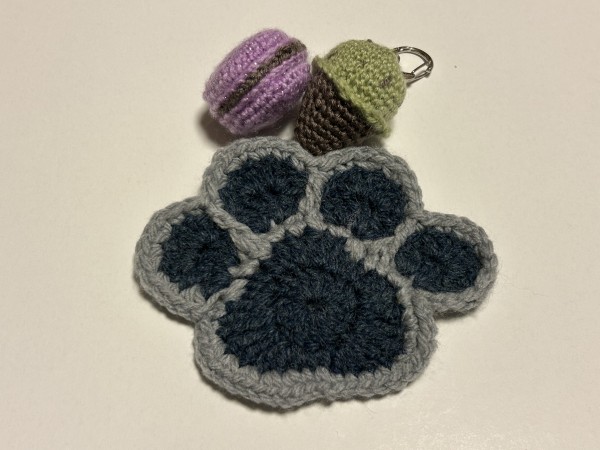 YouTubeを見ながら編みました。アイスとマカロンは細かくてとても難しかったです。ちょっと形が…。猫の肉球コースターは6号針で編みました。こっちは上手に編めたかな⁈