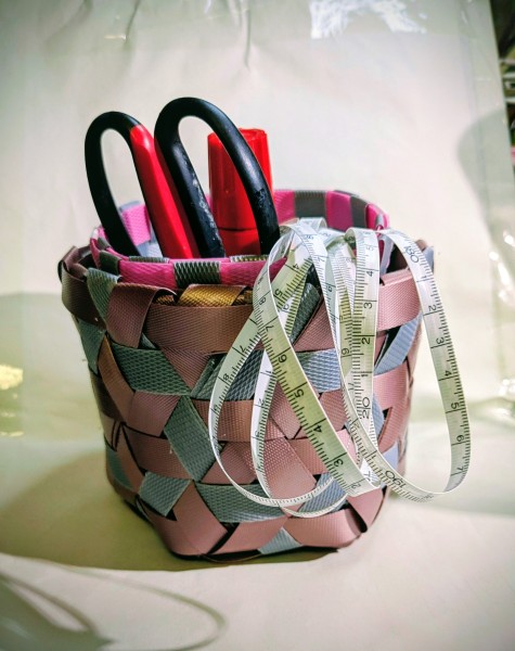 作り始めて4回目で できました。 PPバンドで 正六角形の星模様の小物入れです。