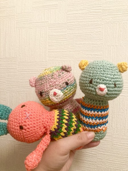 本やネットで探した編み図を参考に作っています。主にかぎ針での編み物メイン。キャラクターをモチーフに色合わせをすることもあります。中学生の頃に祖母から教わり、コロナ禍をきっかけに独学でメキメキと腕を上げまくってる最中です。