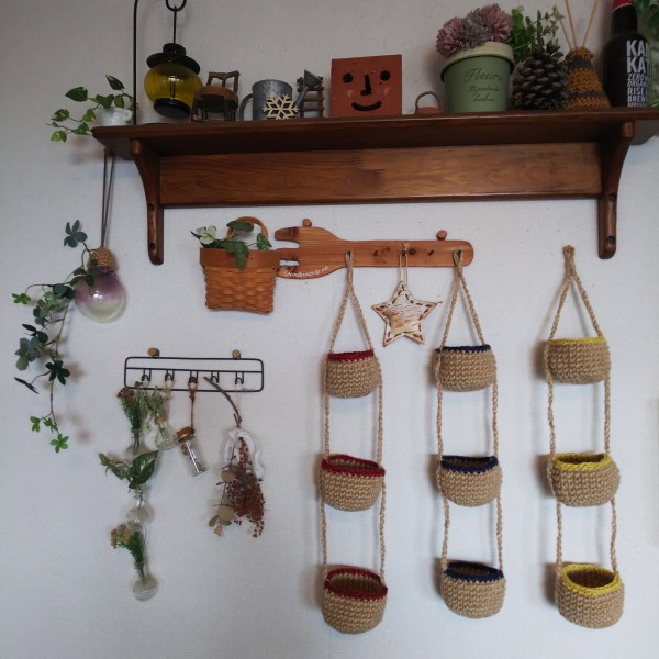 鍵編み中心に麻ひもや毛糸で小物雑貨を作成しています。