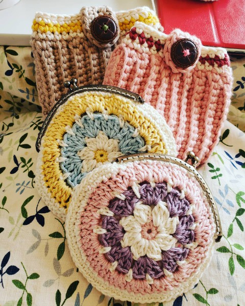 本やネットで探した編み図を参考に作っています。主にかぎ針での編み物メイン。キャラクターをモチーフに色合わせをすることもあります。中学生の頃に祖母から教わり、コロナ禍をきっかけに独学でメキメキと腕を上げまくってる最中です。