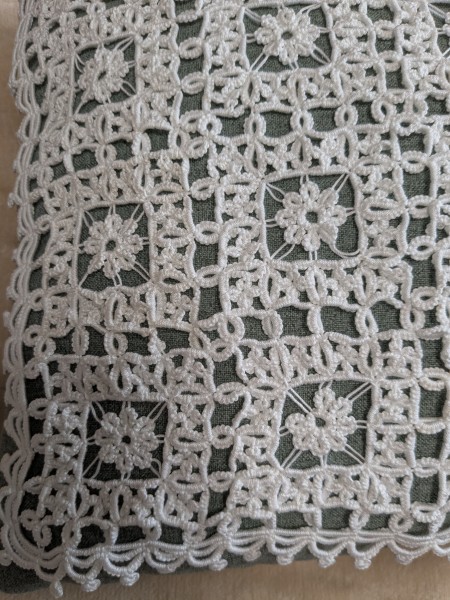 講習のレクチャー時に手順を教えながら出来上がったモールドール。色の違いがはっきりしているのと、ハロウィンが近いので黒とオレンジのモールを使いました。モコモコモールなので小ぢんまりして見えます。レース時のハギレにギャザーを寄せてジャボ風前掛けも付けました。