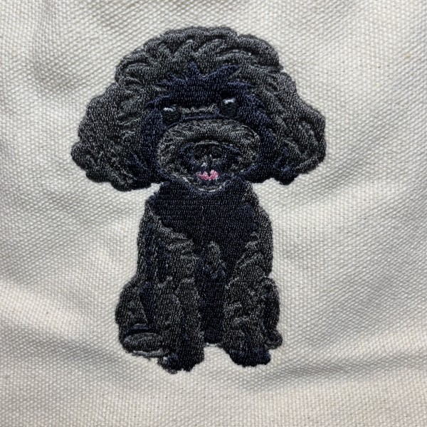黒いトイプードルのお写真をお借りして、刺繍データの作成練習をさせて頂いたお礼に既製品のバッグに刺繍をお入れしました。裏は糸だらけなので裏地とポケットを付けました。