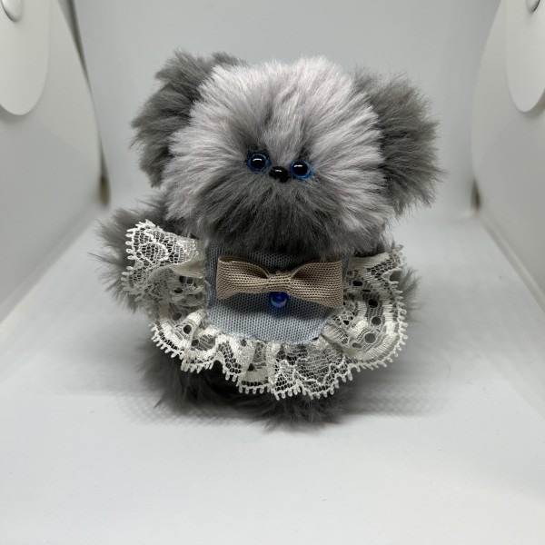 簡単にできるものの講習に講師として呼んでいただき、その講座の練習でモールドールを作ってみました。 家にあったゴムとハギレとレースでスタイとりぼんも作り、付けてみました。 余った針金は切らずに大きな丸い尻尾にして、自立できるようにしました。 30分とかからず完成しました。