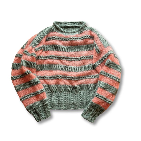 簡単に編めるように、まっすぐなパターンで引き返しもありません。 袖は身頃から目を拾って編むようにしたので袖付けもありません。 気に入った糸を2つ組み合わせて気軽に編んでみて欲しいです。 編み方動画にしました。https://youtu.be/l9t1B2RxkA0