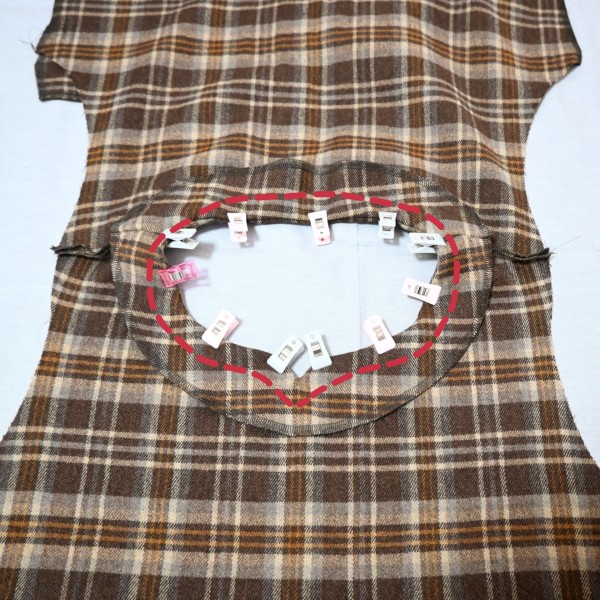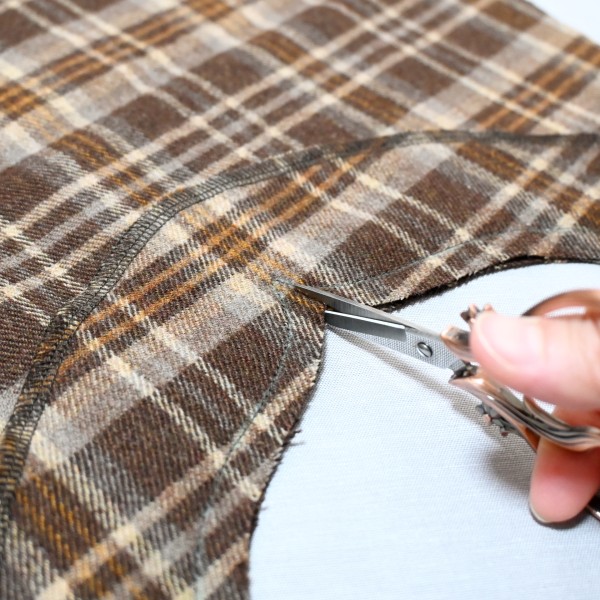 見返しと前後の見頃をそれぞれ中表に重ね、