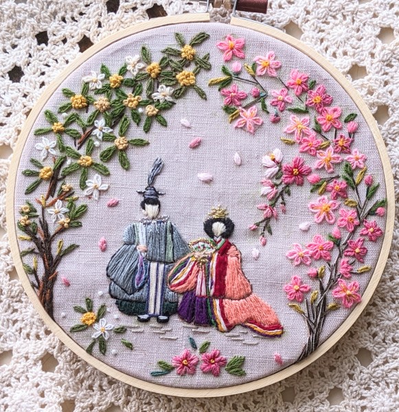 お雛様はあまり代り映えしませんが、背景の図案を変えて違う雰囲気を出せたらと思っています。