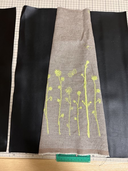柔らかい本革とミナのちょうちょを合わせようと思います。本革をこんな大きく使うのは初めてです。これから荷物が増えるので大きめのバッグが欲しいと思っていたので完成が楽しみ