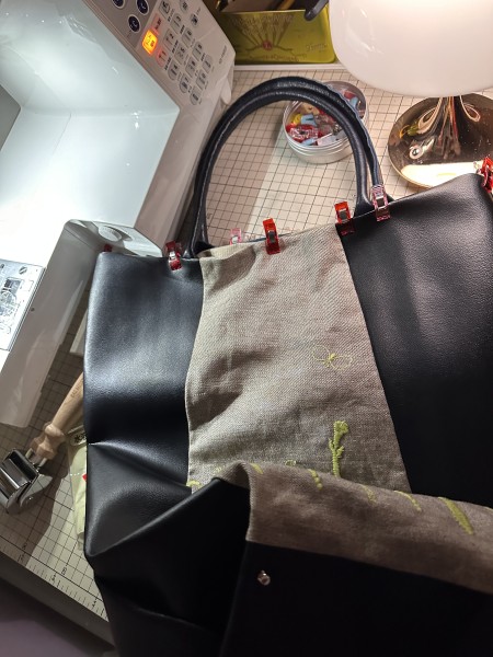 昨日はキリのいい所まで縫い終わった所。色々と誤算が重なり、合皮メインのバッグになりました。本革は底部分のみ。あとはこれから作るハンドルは本革にします!