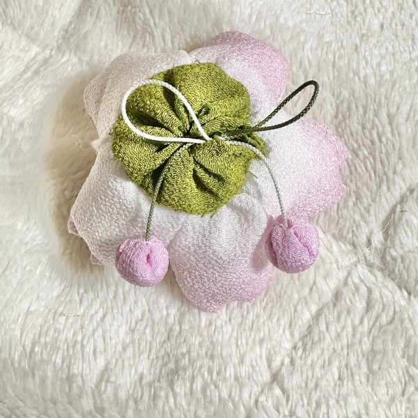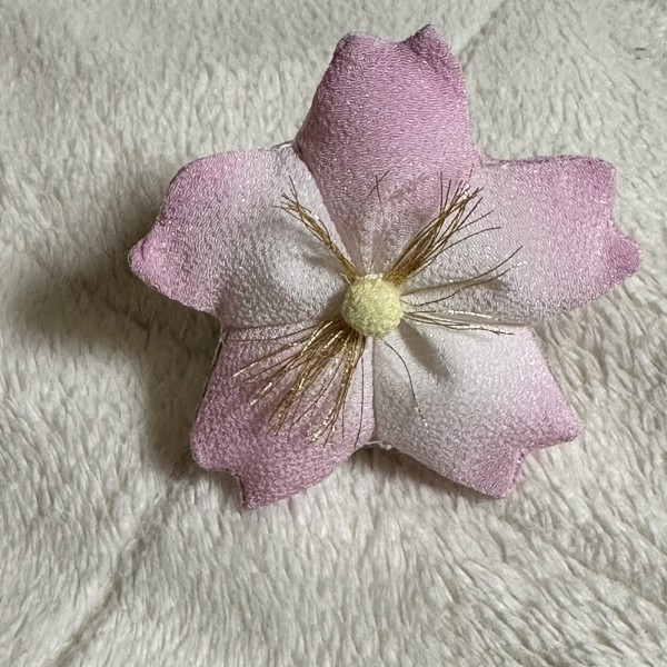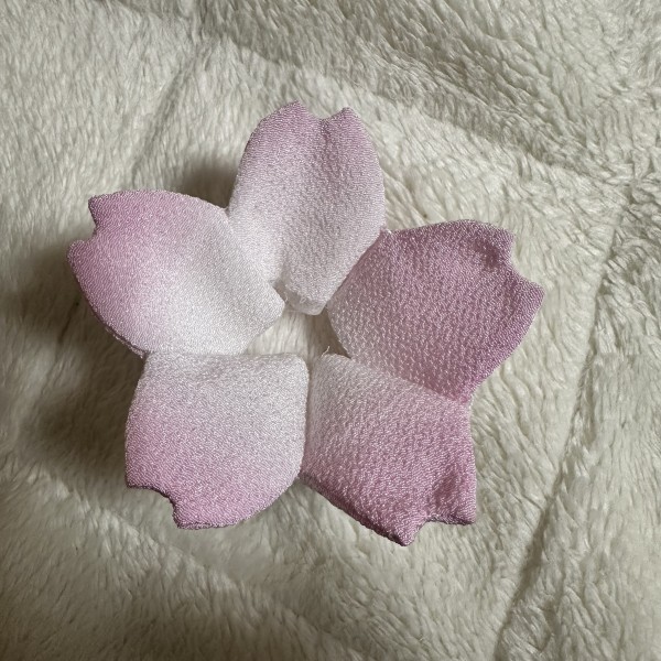 吊るし飾りのパーツ、桜を作りました。1つの桜は花びら表裏で10枚を縫い合わせてあります。