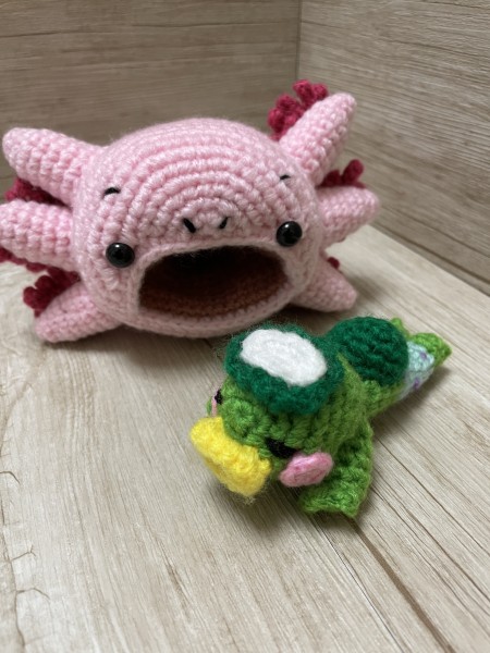 ウーパールーパーとカッパです。口の中のかっぱが出し入れできます。