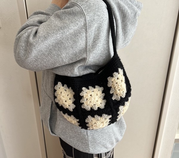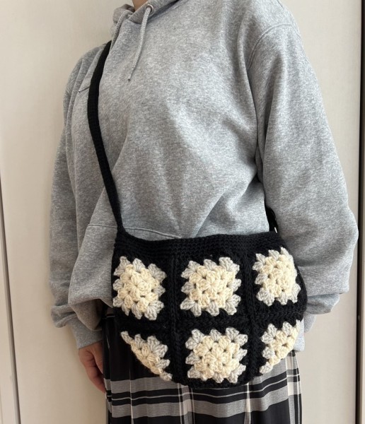 | 先日、頂いた半端物の毛糸で編んだモチーフ編みのグラニーバッグを投稿しましたが、残ったモノトーン系をまとめて 次にこちらの斜めがけバッグも作りました。 先日のバッグがモチーフ13枚、こちらが10枚...黙々と編みましたがやっぱりモチーフ編みは楽しい(*^^*) 今回は肩紐は斜めがけや、短くしてショルダーにもなるように 長さ調節できるようにしてます。 半月型のような形にしたのでバックの入れ口がガバっと開くのを防ぐためにマグネット付きのフラップもつけました。 黒の毛糸が多めにあったので、その残りで 毛糸を頂いた方にレッグウォーマーを編んでお返ししました♡ |