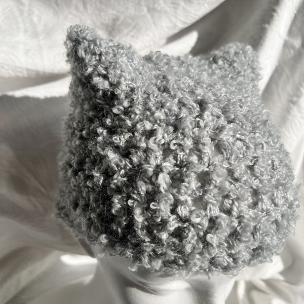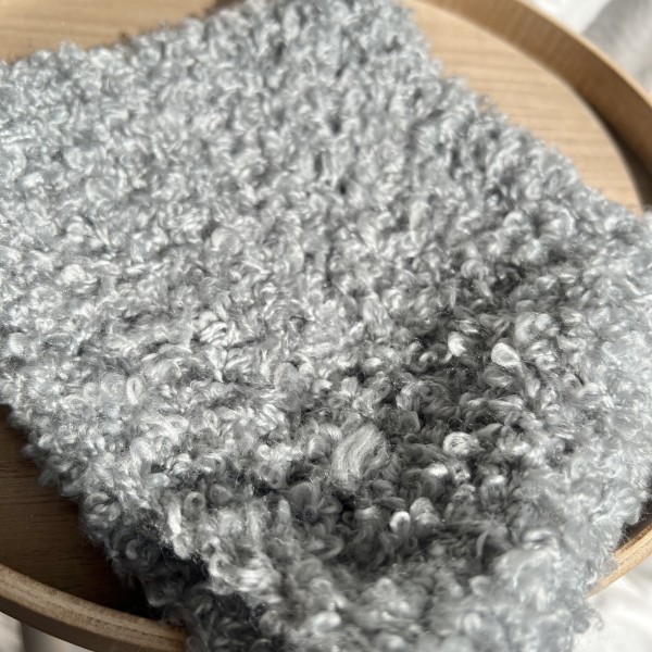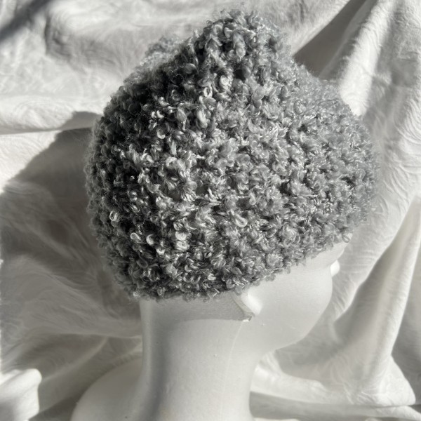 ループのついてるプードルのような毛足の糸を2本どりで編みました。