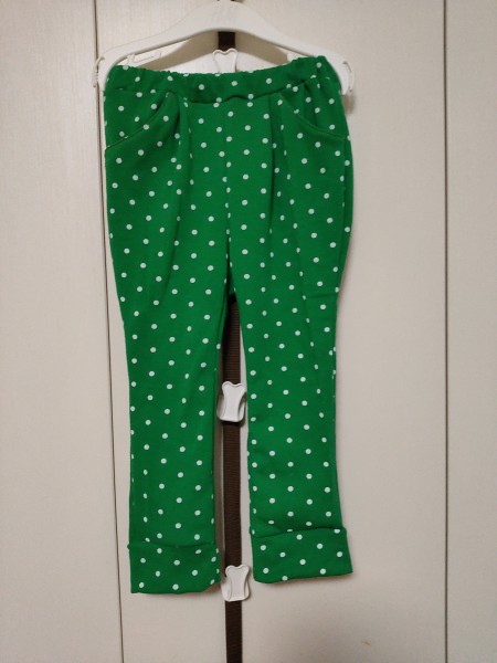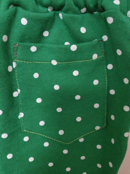 トレーナー地で作成。ポケットのステッチにはステップカラーを使いました。