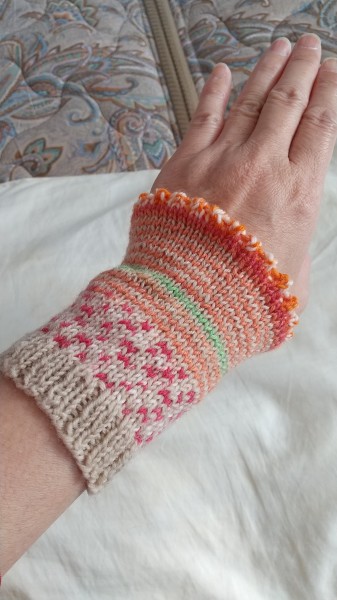 ハッピースクラッピー編みのリストウォーマー編み始め。