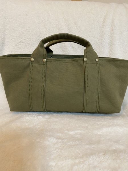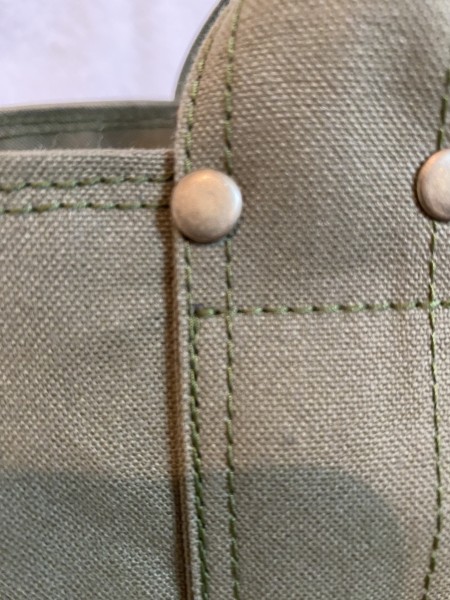| 吉本典子さんの毎日持ちたい帆布のバックという本を見て作りました 中袋も同じ布で作っているので、11号帆布ですがしっかりできました 縫い目を開いて端ミシンをかけるとき、合わせた布がずれてしまったり、縫い目がまがったりしています カシメを打つ位置に縫い目が重なり、カシメの下で糸も切れています カシメ、難しい… |