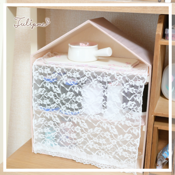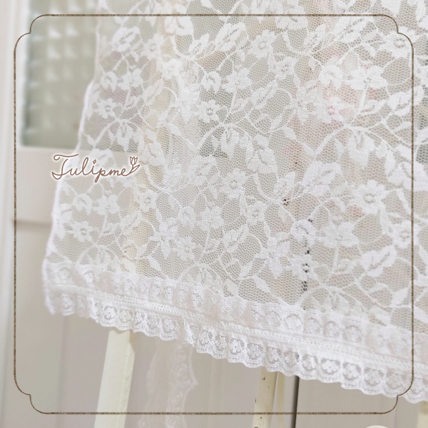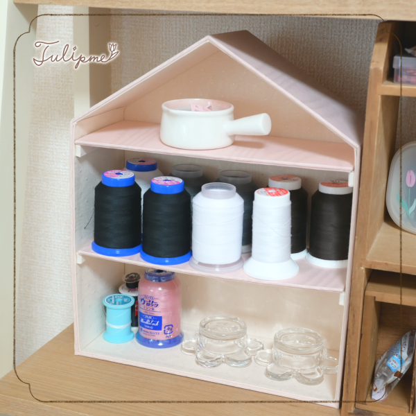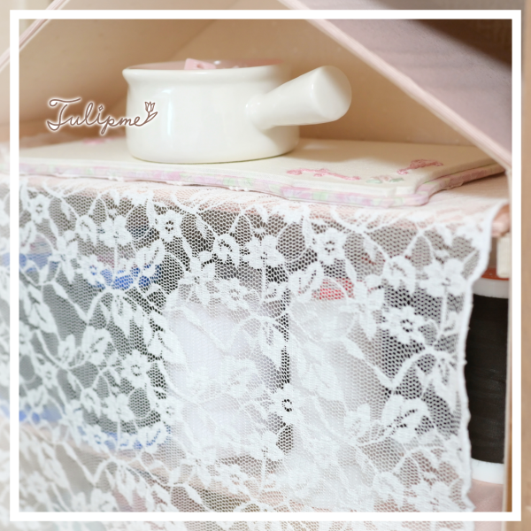| 以前作ったカルトナージュのおうち型の収納棚を 糸収納に使うことにしたのですが、 目隠しが欲しいなぁとレース生地で簡単にカーテンを作りました。 中が全く見えないとどこに何を置いたか分からなくなりがちなので、敢えて、ちょい透けのこちらのレース生地を使いました。 オシャレに目隠し出来て満足です( ꈍᴗꈍ) |