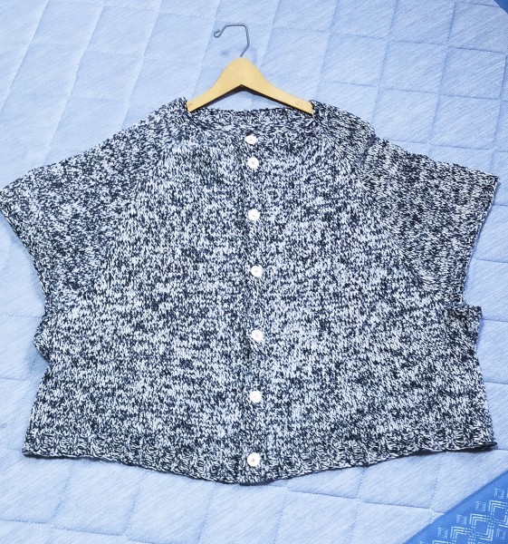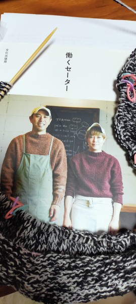 | 「働くセーター」に出てくるカーディガンを制作はじめました。 が、春になってしまったので前開きのオーバーサイズベストに変更しました。 |
