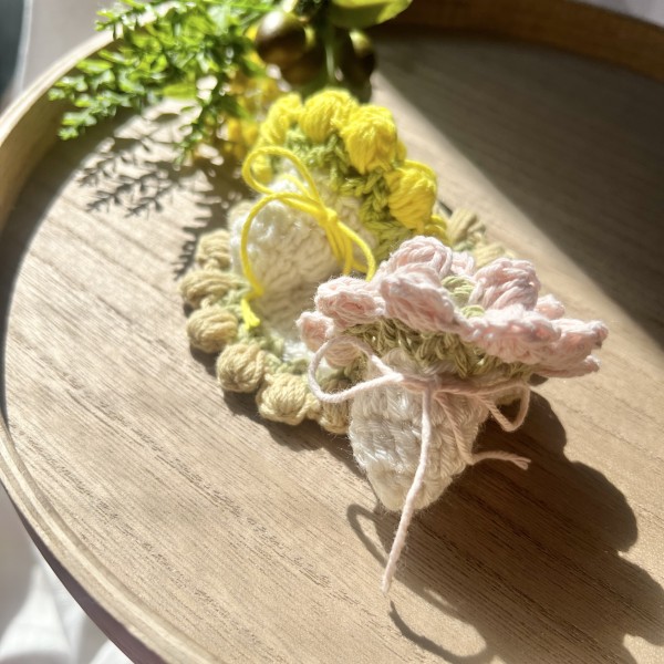 広げるとコースターに、丸めるとブーケになる2way仕様です。チューリップの花束イメージです。
