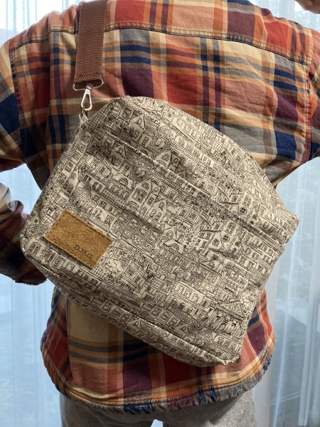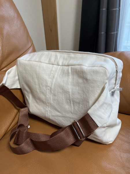 デニム側は斜め掛けに、柄側は肩掛けに出来る持ち手にしました。