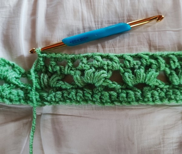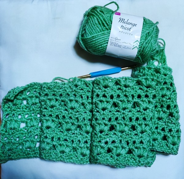 4個目の毛糸です。まだ15cm位。10個購入したのですが、足りなくなりそうな気がしてきました。玉編みは糸の減りが早いのでしょうか。買い足ししました。