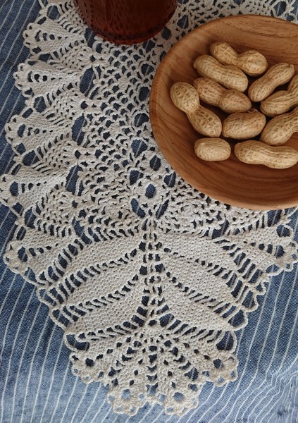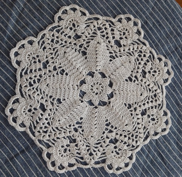 かなり前に作成したクロシェレースのドイリーが見つかったのでアップします。洗ってブロッキングしたら綺麗になりました。白レース、また編みたくなりました。