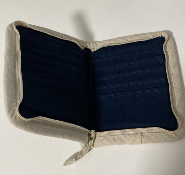 こぎん刺しでカードケースを作りました。こぎん刺しはふくべ(ひょうたん)のモドコです。