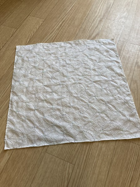 刺し子のリネンの43センチ四方の小風呂敷です。