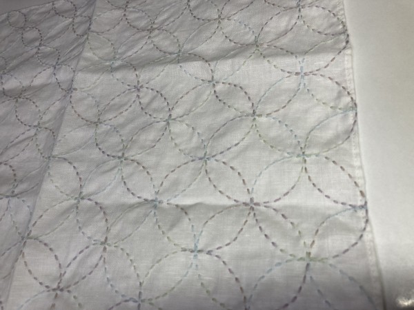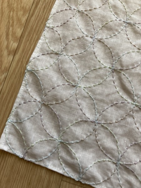 白のリネンにオリムパスの段染め糸で七宝を刺し子しました。