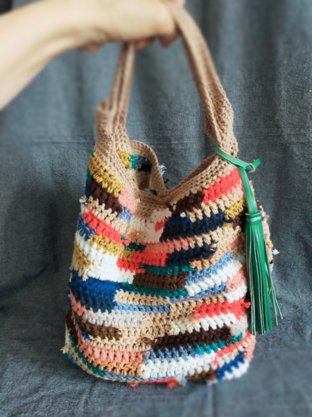 半端になった毛糸でバッグを編んだ