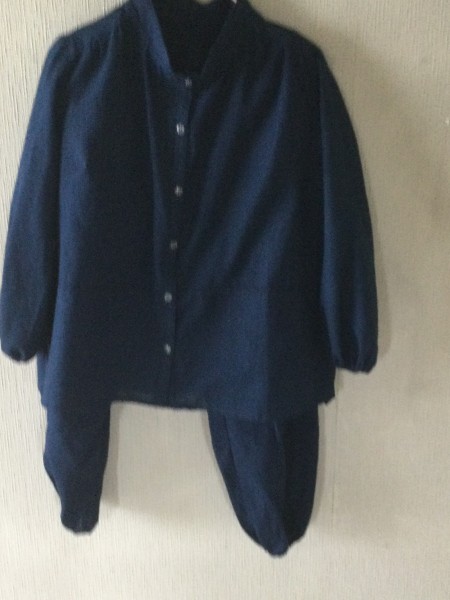 単の着物を解いて農作業用のブラウスとモンペに仕立てる