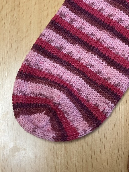 暖かくなってきたので、コットンのソックヤーンでショートソックスを編みました つま先から編んで、かかとはラップアンドターン 伸縮性のある糸なので、小さめに編んでも程よくフィットしてくれます