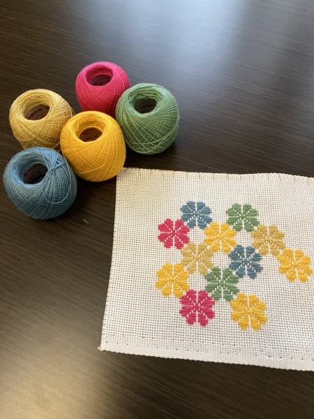 糸はこの五色、花の配置は試行錯誤しましたがとりあえずこの配置で進めています。