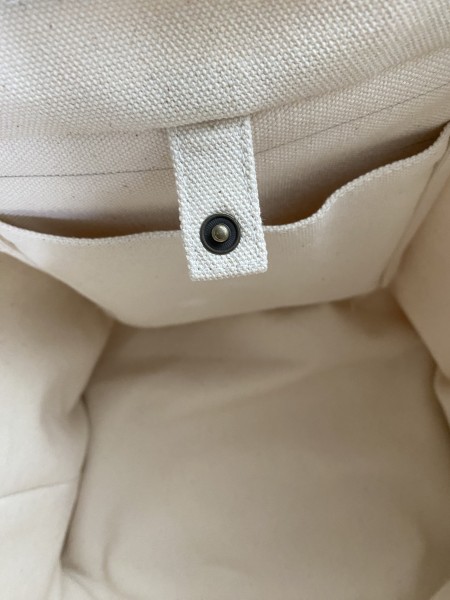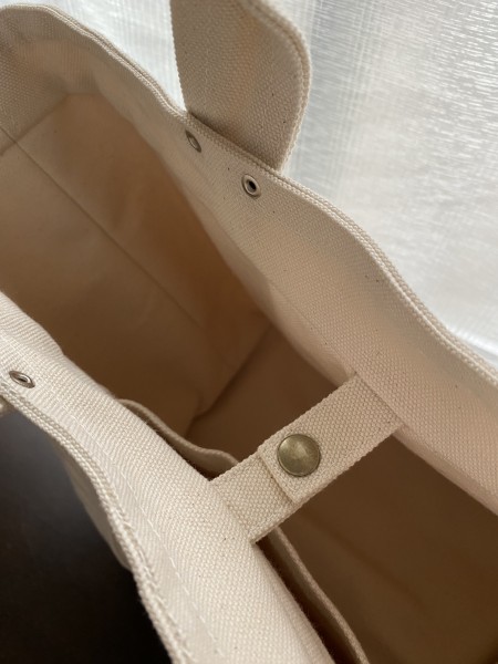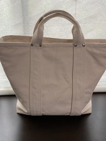 8号帆布を使ったカバンの2作品目。帽子屋さんで見かけたワッペンをつけました。既製品みたいに見えるかな?