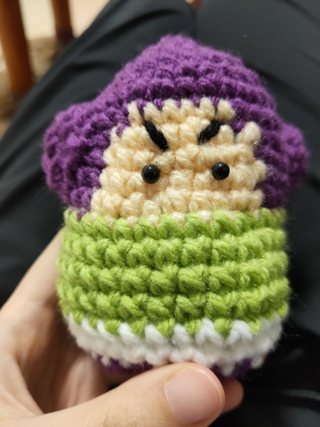 本やネットで探した編み図を参考に作っています。主にかぎ針での編み物メイン。キャラクターをモチーフに色合わせをすることもあります。中学生の頃に祖母から教わり、コロナ禍をきっかけに独学でメキメキと腕を上げまくってる最中です。