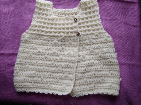 編み直したりなんやかんやで、夏になってしまった冬物ベスト ワッフル柄と、ダブルの打ち合わせが可愛い この冬に着られるかなあ、、サイズ 大きく育っていて、着られなかったらお蔵入りだね