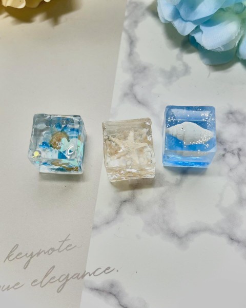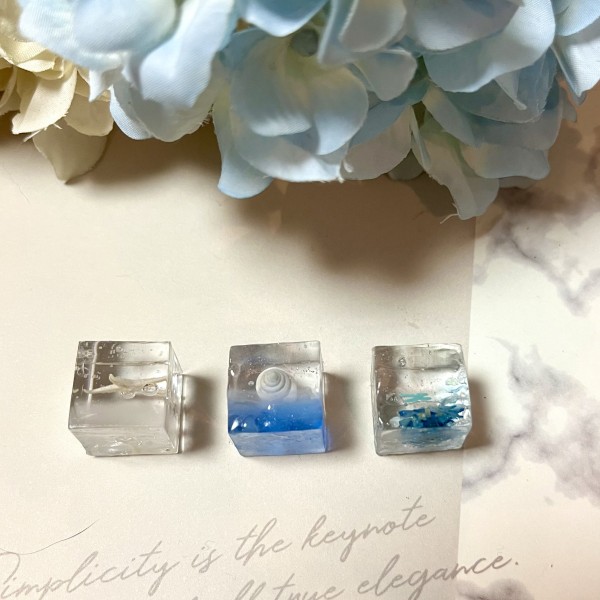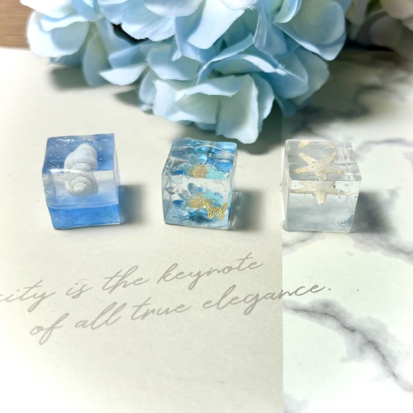 キューブ型に夏っぽくヒトデや貝、花などを入れてみました。