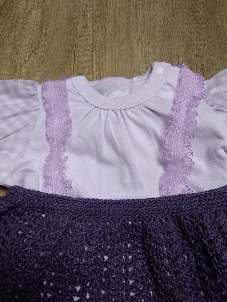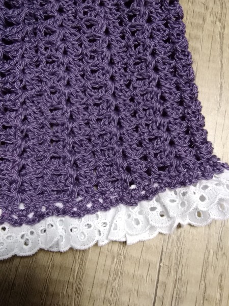 裾にはレースを縫い付けて、紫の渋さをカバー
