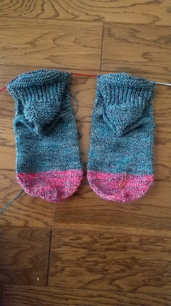 踵フラップに斜め模様を入れようかどうしようか考え中(^.^)