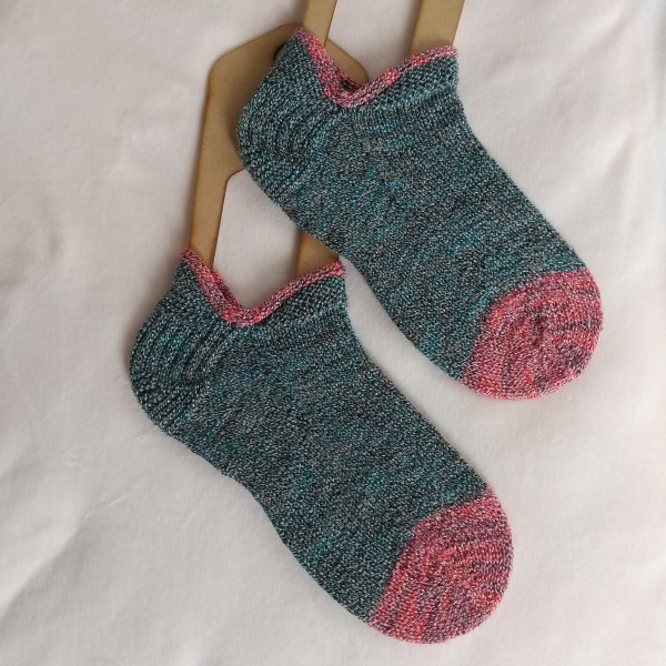結局、踵フラップは滑り目のオーソドックスなものにした。