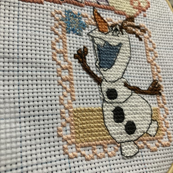 はじめてのディズニークロスステッチ」より、97〜98号のオラフです(^ ^)