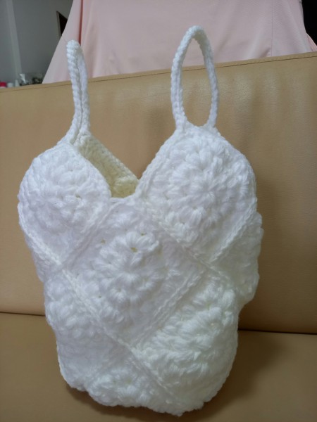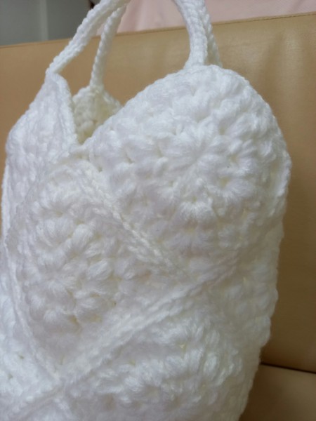 素敵にハンドメイドで紹介された「白いモチーフ編みでトートバッグ」を編んでみました。
