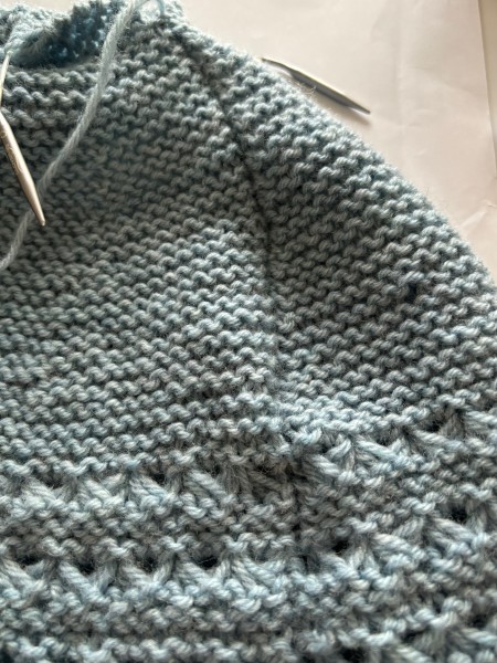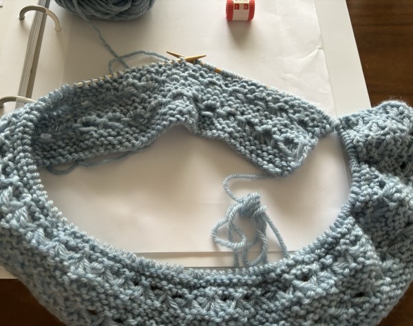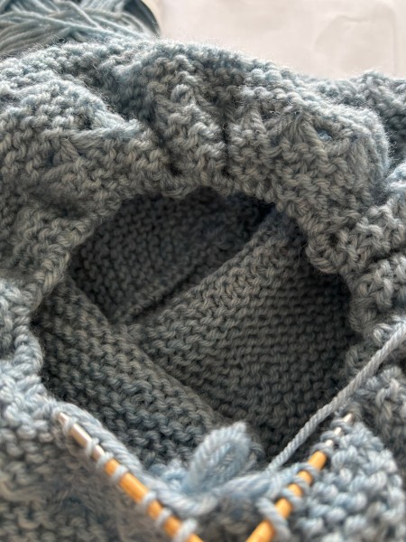 指でかける作り目をして、先にトップに向かって模様編みを編みます。こんな複雑な模様編みは編んだ事ないので…編み方合ってるのかなぁとちょっと気になりますが。