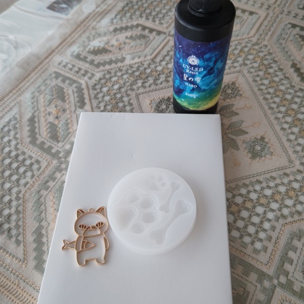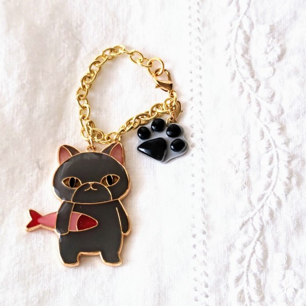 | 空枠に レジンで色をつけて 飼い猫のブリティッシュショートヘアのチャームにしました。 お目目は金ピカ シルキーグレー お気に入りのぬいぐるみの色にまでこだわって。 特に眼の黒色の量で、かなり表情変わるので、そこは念入りに微調整しました。 肉球の色も、もちろんうちの子色です。 表裏どちらから見ても可愛くできました(親バカ すみません!) |