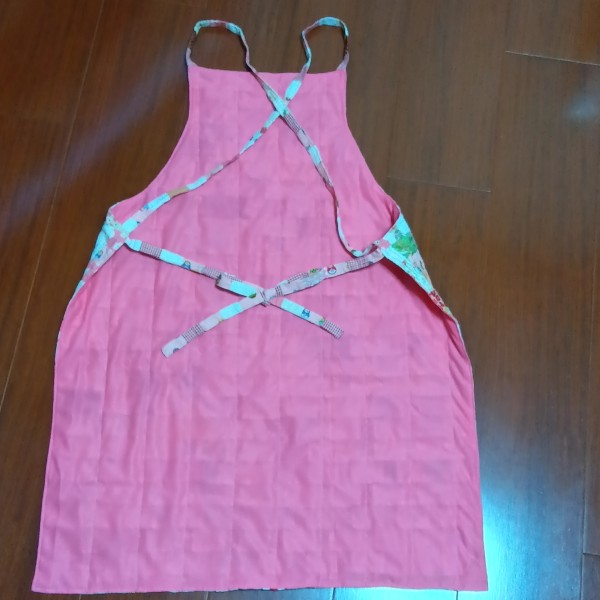 | 手持ちのはぎれで、エプロンを作りました。 3cm角のピースを498枚と、6cm角を5枚つなげました。エプロンの仕立てにはミシンを使いましたが、ピースは全て手縫いです。 縫い代は切りっぱなしなので裏地をつけました。とても派手ですが、こちらも手持ちの布で。何を作ろうとしていたのか思い出せない布も救出できました(笑) 表と裏が離れないように少しだけミシンでステッチを入れています。 結構はぎれを消費できたと思ったのですが、在庫が減った気がしないのは気のせいでしょうか… |